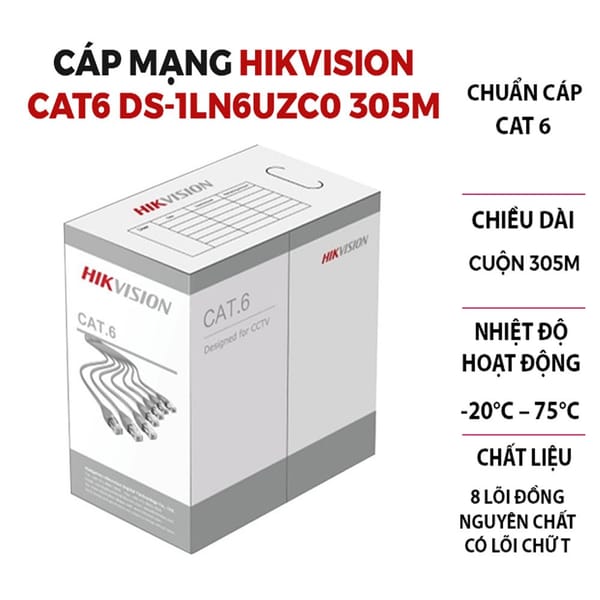 Cuộn 305m Cáp mạng CAT6 BC HIKVISION DS-1LN6UZC0